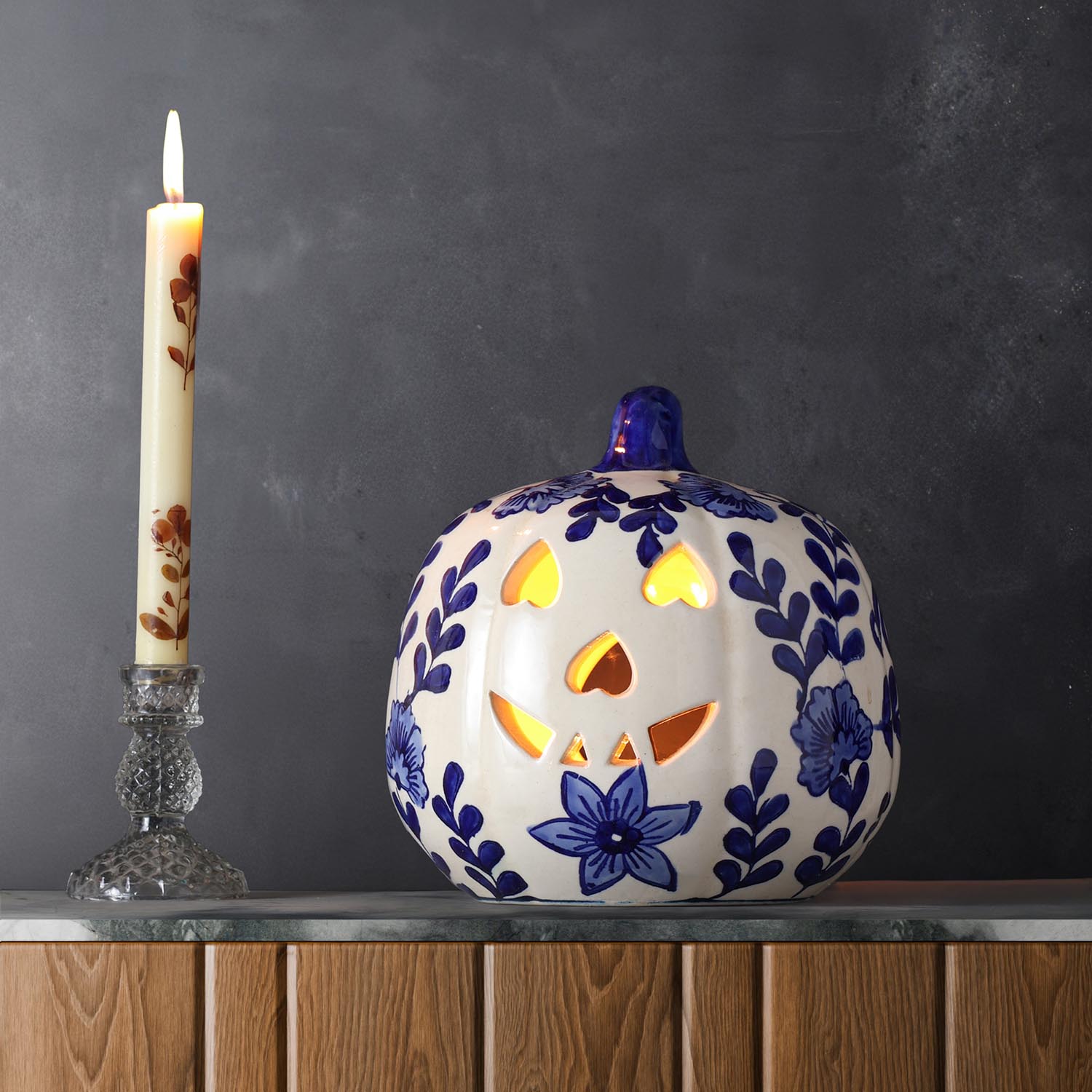 Ceramic Pumpkins. Hand painted in fall colours. Some with cut outs of happy faces. Others with spaces to use your t-lights and candles. These look amazing in doorways and also work well as 'nazarbattu".