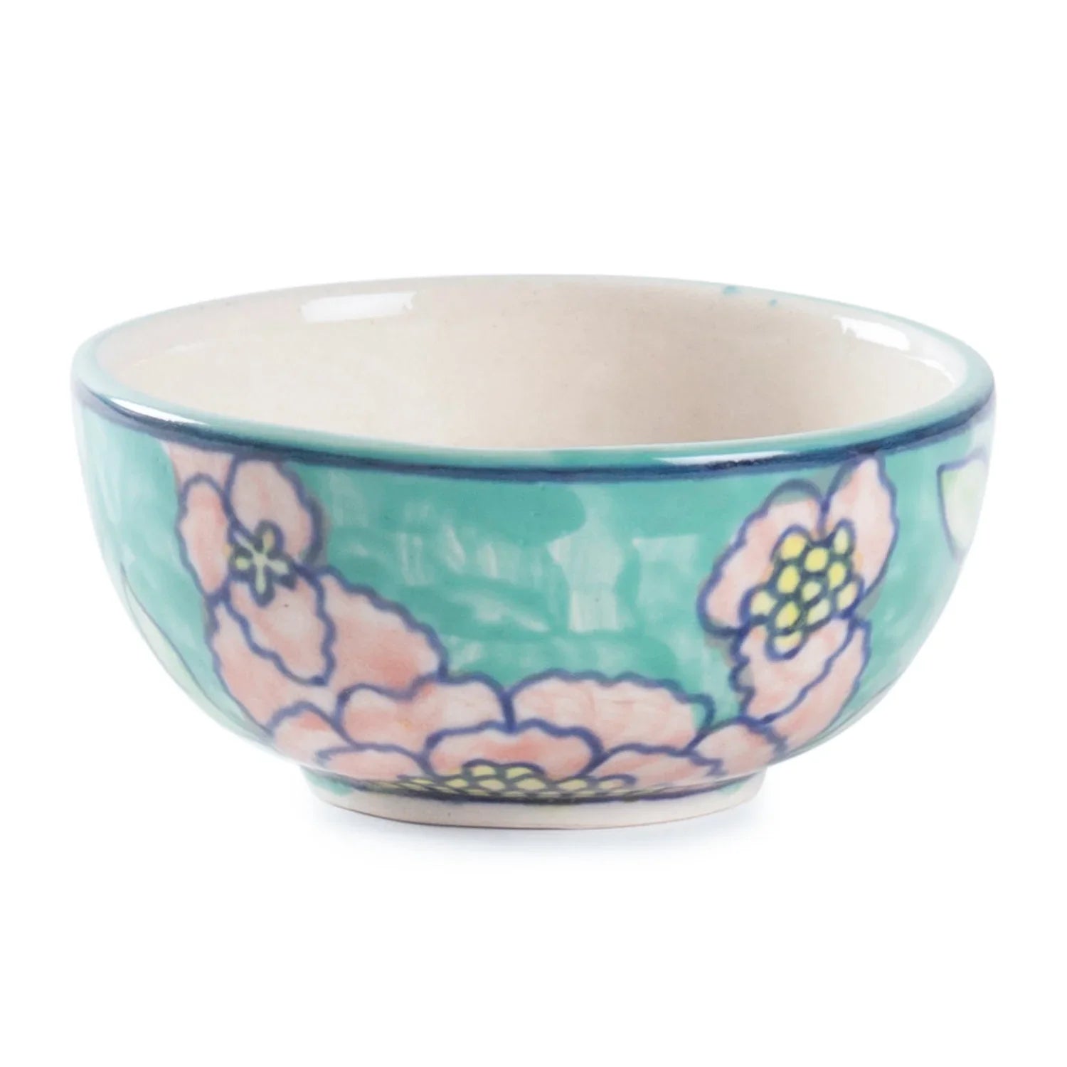 Khurja ceramic in it's modern avatar. This is hand-painted khurja ceramic in beautiful florals hand-painted in gorgeous colours. A full dining collection in bright but pastel hues. It is celebration time.