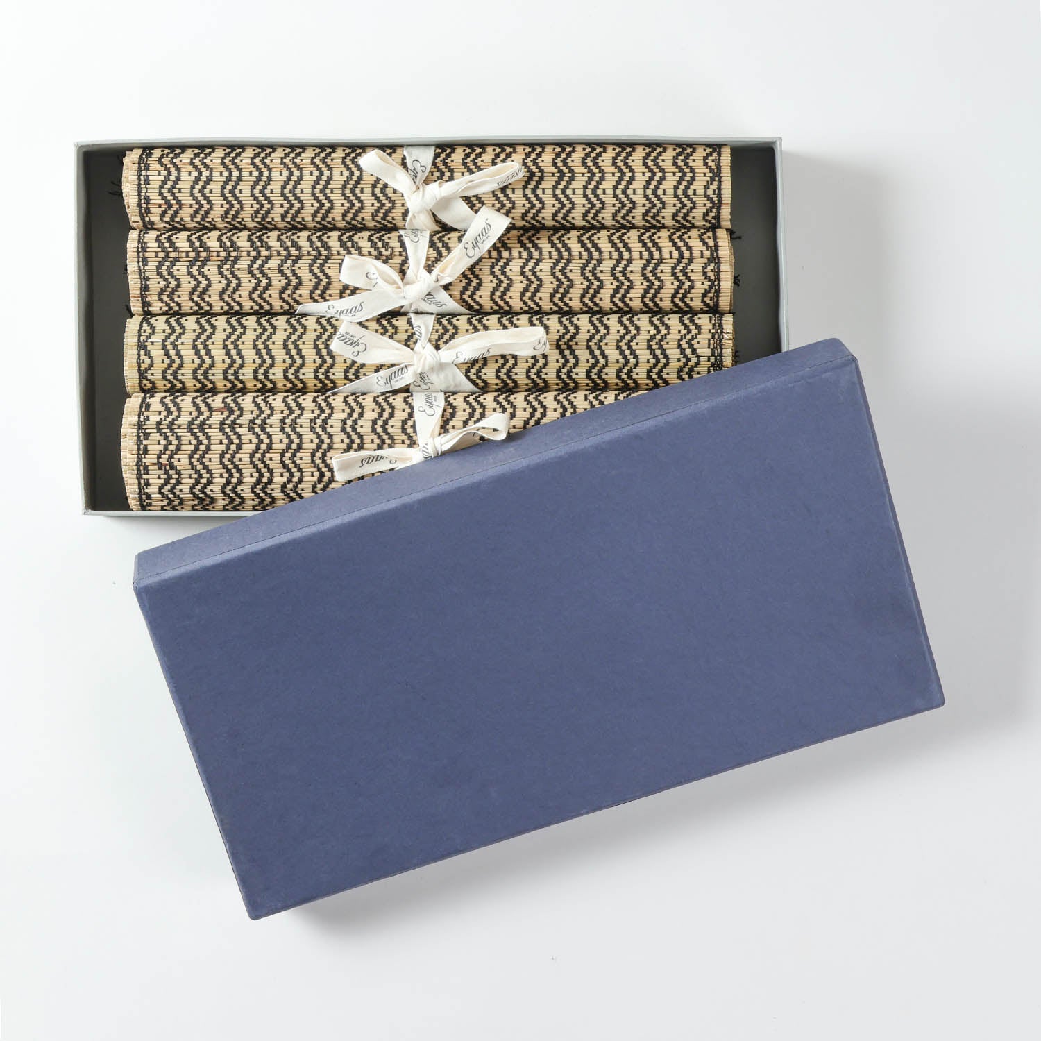 Create an earthy, minimal dining setup with this handcrafted Madhurkathi table set. The natural base with black detailing highlights the beauty of the woven grass texture. Made using Madhurkathi reed and interwoven with cotton thread, it reflects timeless craftsmanship.