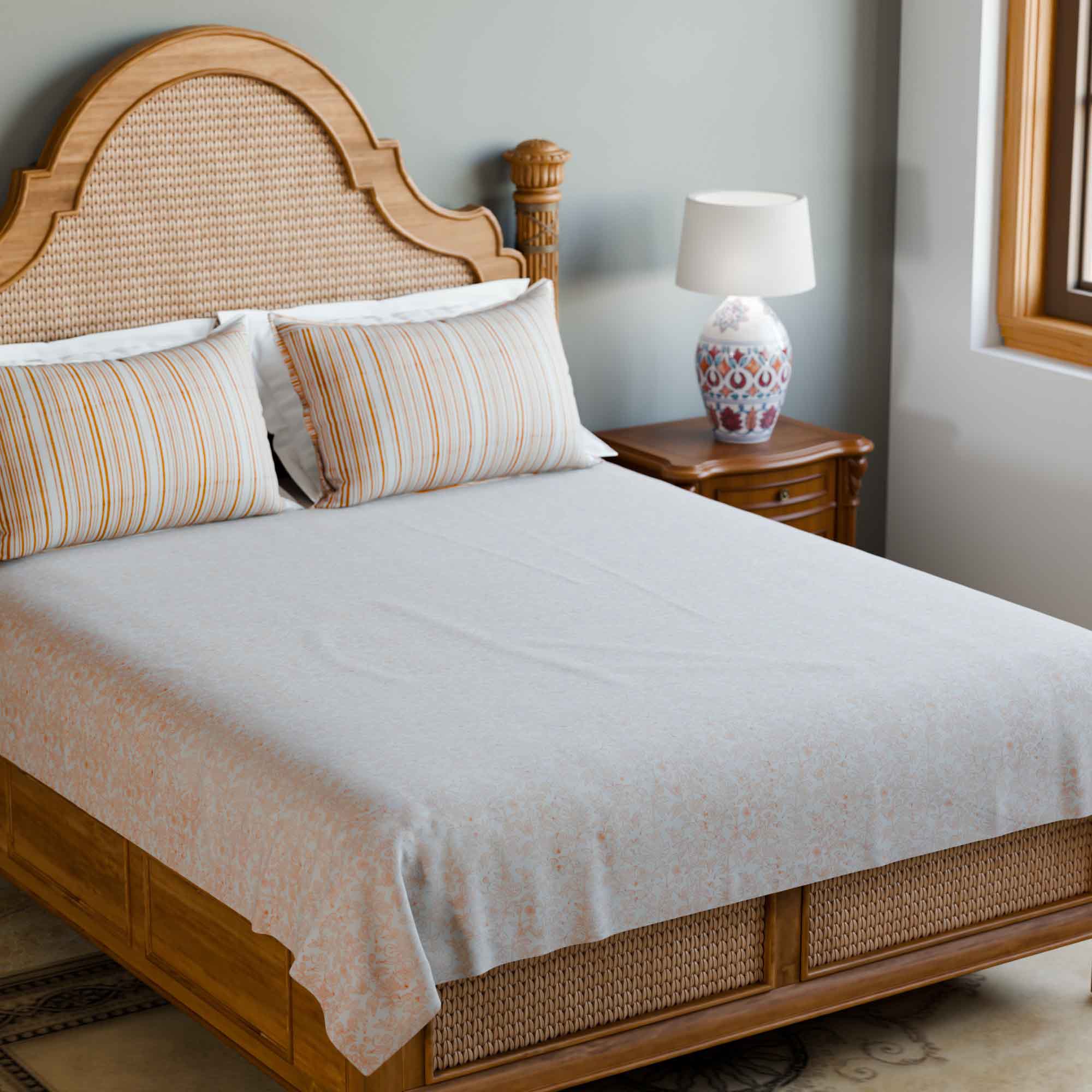 Add a touch of handcrafted elegance to your bedroom with this Hand-Block-Printed Bed Sheet Set. This 90x108-inch set features a distinctive orange outline pattern. Sheets come with two orange striped pillow covers with a flap and ties.