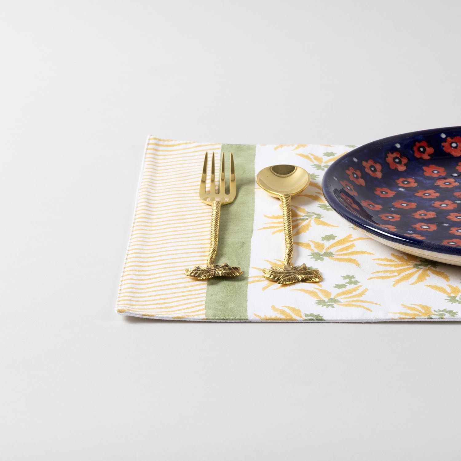 Set your table in style with this pair of Yellow Lily Block-Printed Placemats. Printed by hand using centuries-old techniques, each mat features intricate blossoms in yellow and highlighted with green. Made from thick cotton sheeting, they offer beauty and protection to your table surface.