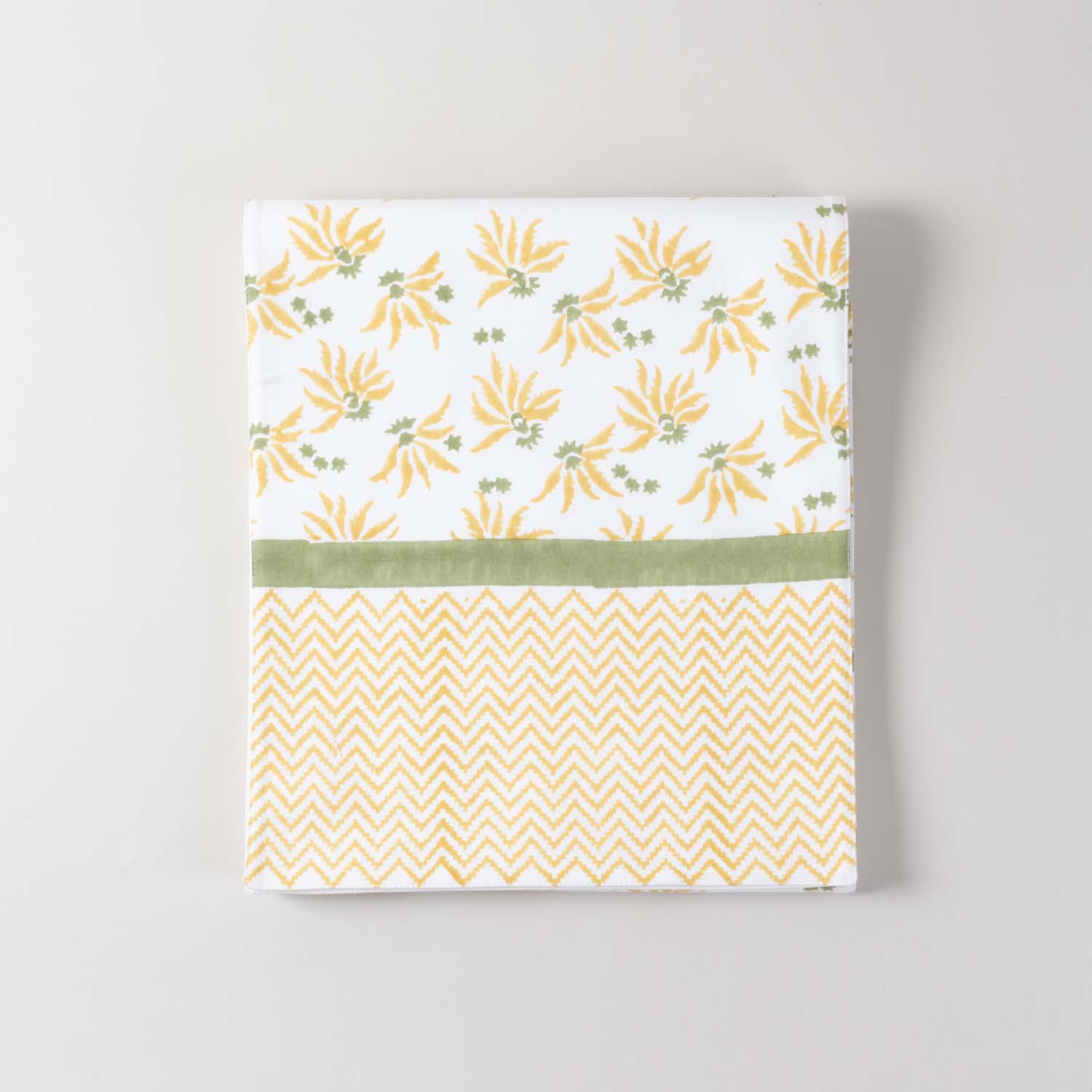 Fresh and lively, this Yellow Lily Table Runner instantly brightens any space. It is hand-block printed on a white base with vibrant yellow blooms and highlighted with green and yellow lines. It is designed for long dining tables or counter tables. Style it solo or layer it with matching placemats and napkins for a coordinated look.